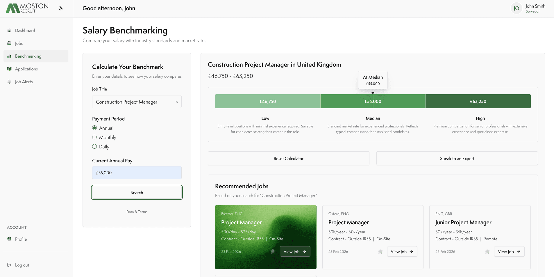 Backed by 14 years of real placement data not estimated market surveys, our Pay Benchmarking Engine covers 1,000+ job roles across the UK. Regardless of if you're benchmarking a facilities manager salary, a maintenance engineer rate, or a building services engineer package, you can see where your current pay sits against the market median in real-time.